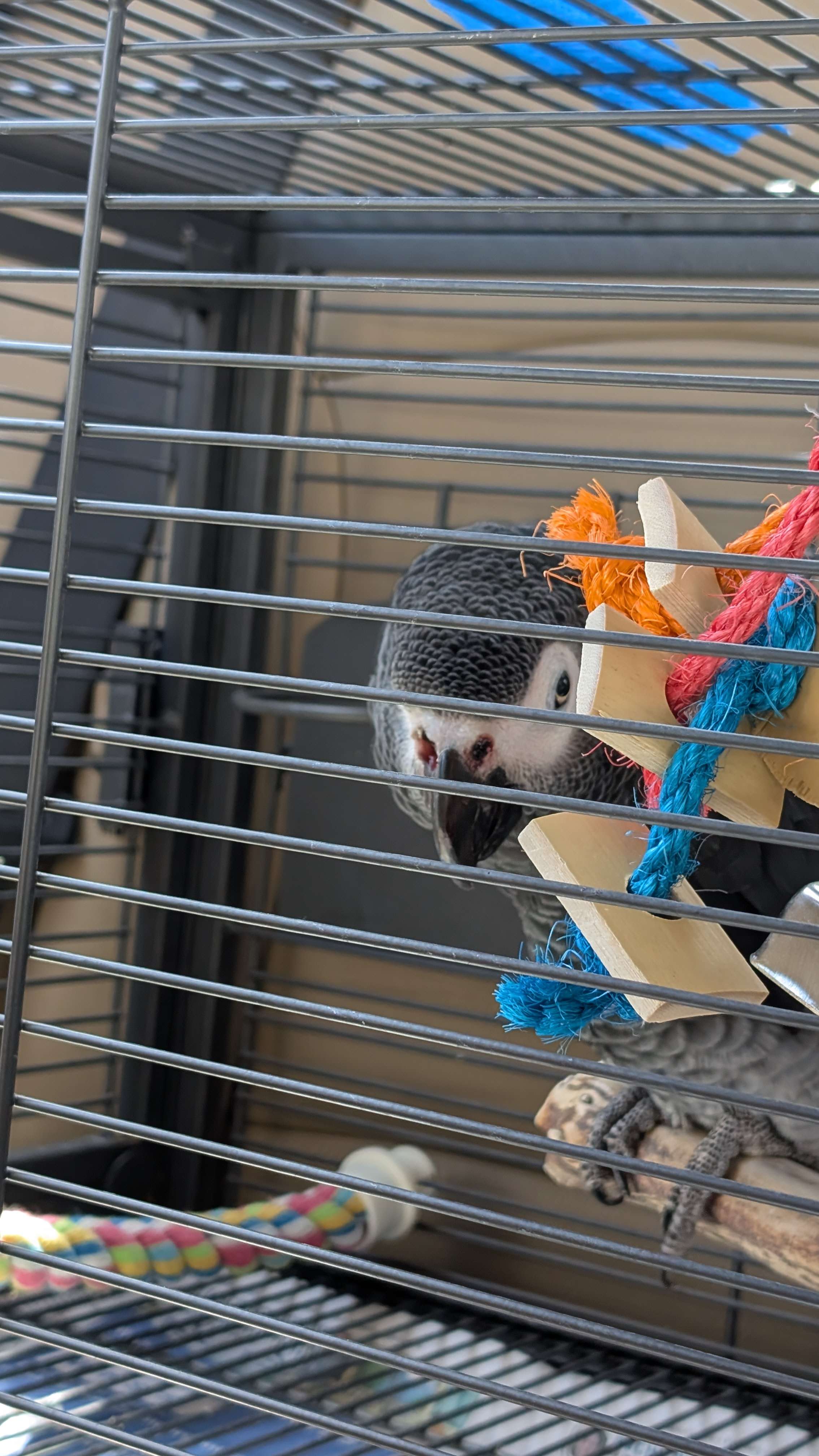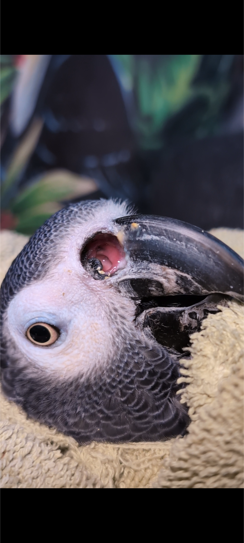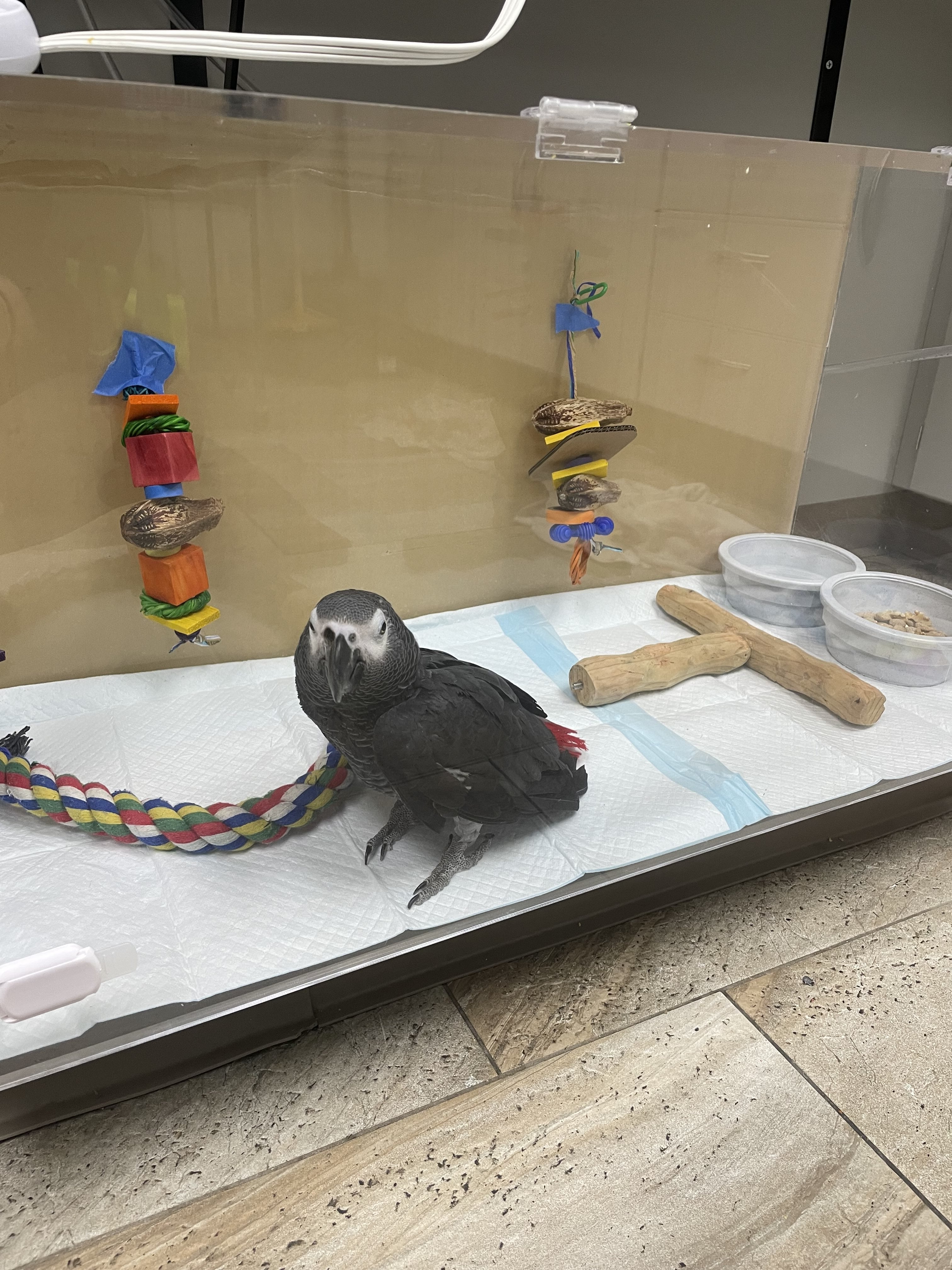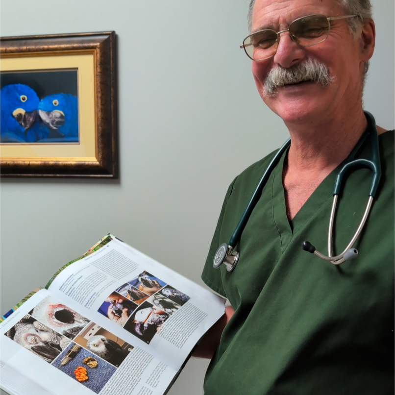 Dr. Speer of Medical Center for Birds knew exactly what Caesar needed! As soon as he saw our boy, he pulled out the book he wrote, and turned to the section involving rhinoliths, which happened to depict a past patient of his- also an African Grey!