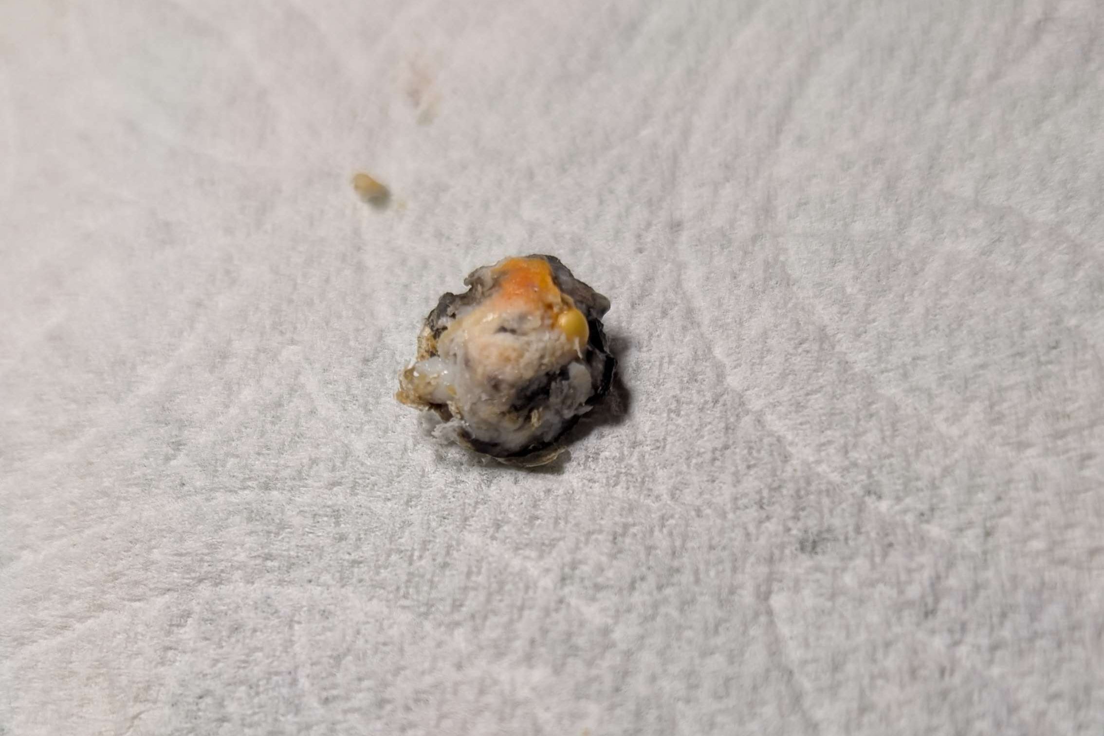 The rhinolith itself- a calcified mass of debris and buildup over the course of many years. There was a less than pleasant smell to the mass.